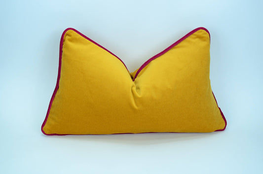Yellow and pink pillow case // yellow and pink cushion // velvet piping pillow