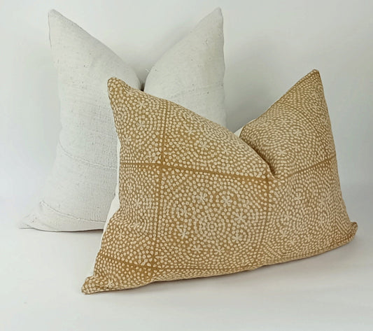 Yellow block print pillow, block print mustard floral pillow, block print cushion, neutral throw pillow, designer pillow