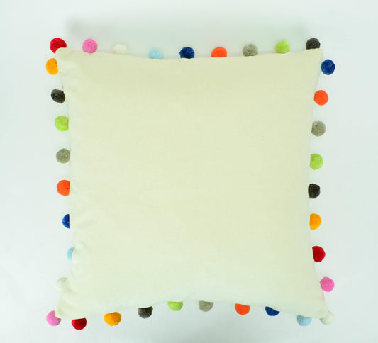 Pom pom pillow // rainbow pom poms // colourful pom pom cushion // jumbo pom pom cushion
