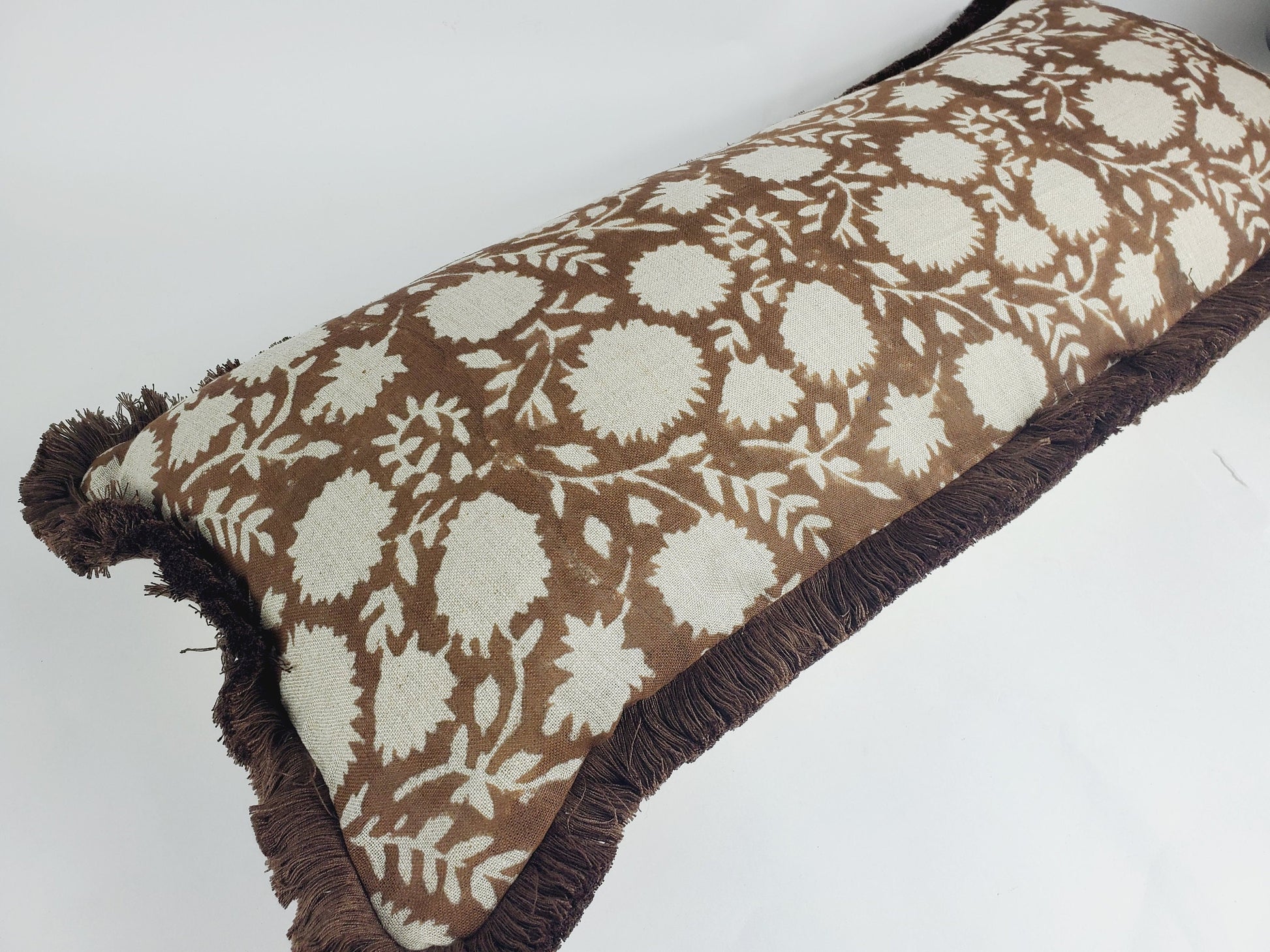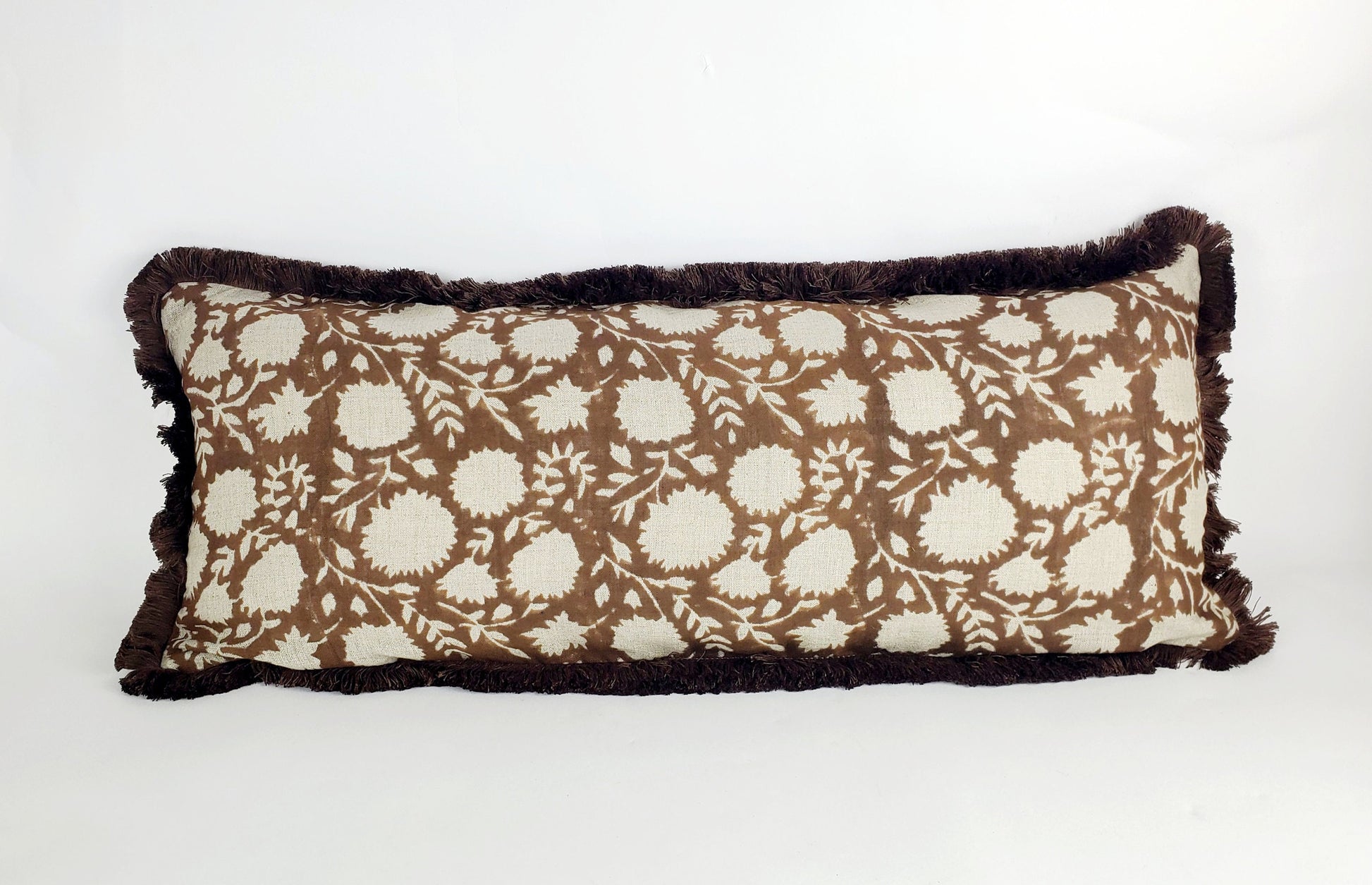 Brown block print pillow, chocolate brown...