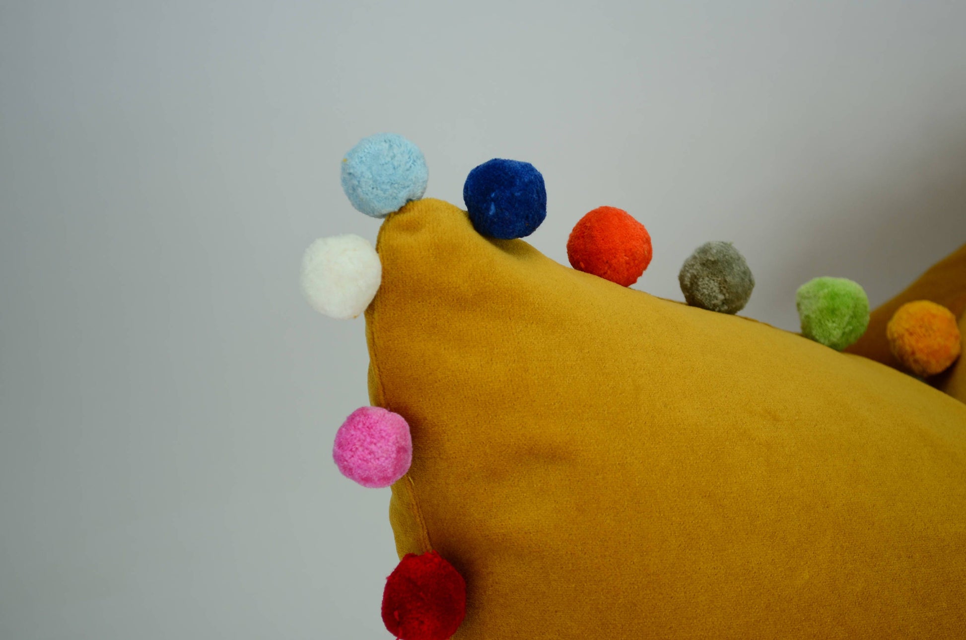 Mustard pom pom cushion // jumbo...
